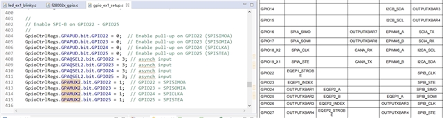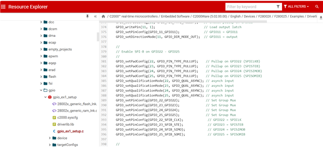 C:\ti\c2000\C2000Ware_4_03_00_00\device_support\f28002x\examples\gpio,以上目录中的例程中的第412至415行,这4行的复用设置和数据手册的43页的GPIO Muxed Pins Table对不上,这个配置是不是有问题呢?