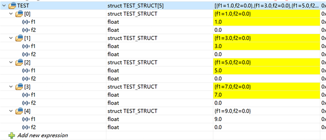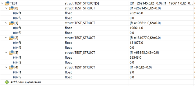volatile struct TEST_STRUCT TEST[5];