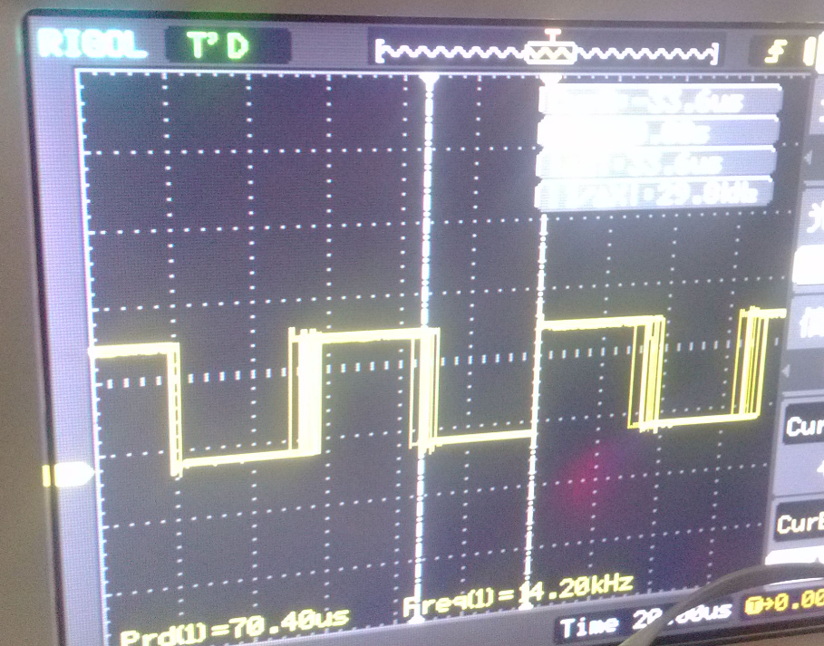 我要用定时器0产生一个15KHZ的方波输出,程式运行之后发现输出的波形不稳定,通过单步执行发现寄存器TIMER0TIM每次不是递减1,而是一个不定值(比如2、8、C……),请问这是什么原因导致的,这跟程式中同时使用EPWM有没有关系? 还有TIMER0TPR与TIMER0TPRH设定的值都是0。