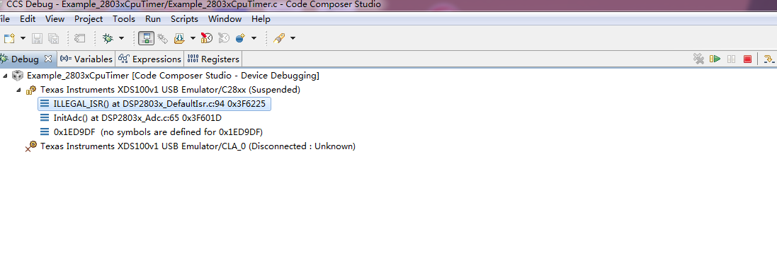 用dsp28035,程序编译没问题,但是程序运行不了,情况如下 这是什么回事啊