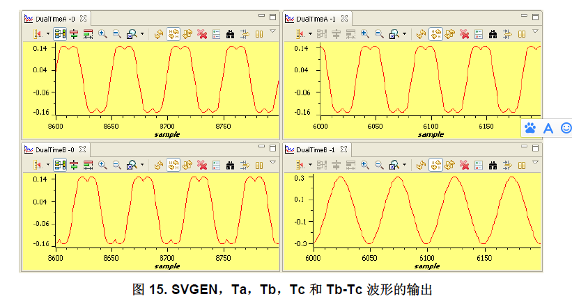 问题二:怎么得到从SVGEN-MACRO中输出的Ta,Tb,Tc以及Tb-Tc的波形,我看TI官方给的PDF就有相应的图形求大神解答