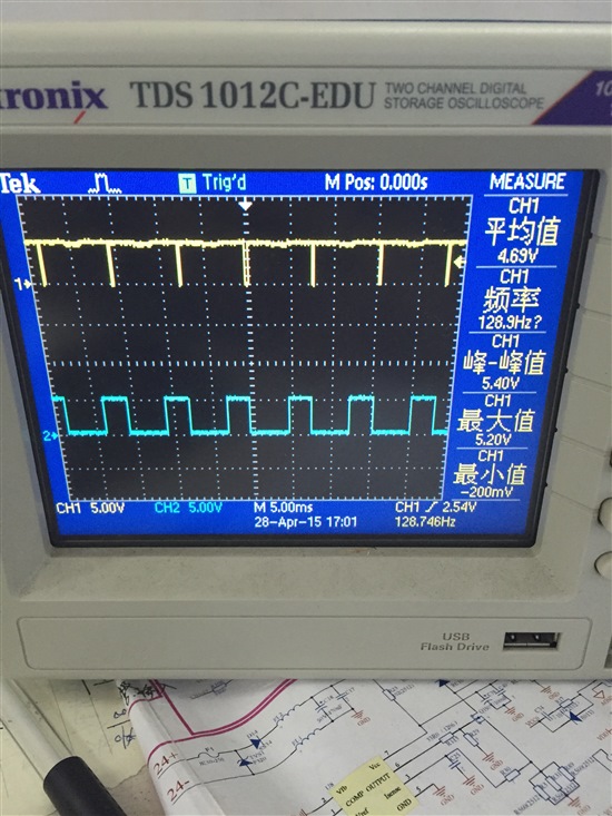 您好我想再问下,我用示波器看到的从PWM-MACRO模块中输出PWM1A/B,PWM2A/B,PWM3A/B的波形都是像下图一样,一个电压为4.55v,另一个为1.7v