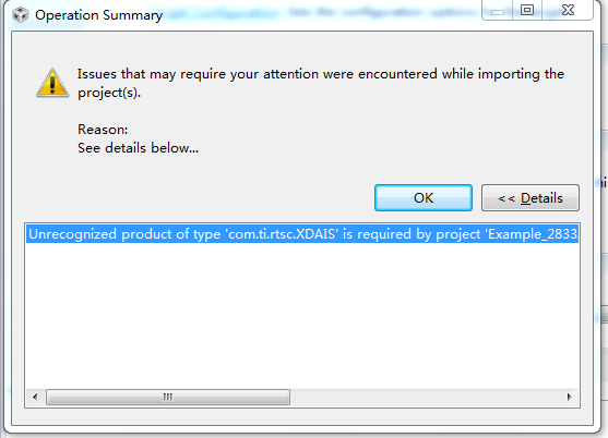Unrecognized product of type 'com.ti.rtsc.XDAIS' is required by project 'Example_2833xEPwmDeadBand' - please install at least one product of this type before building this project.