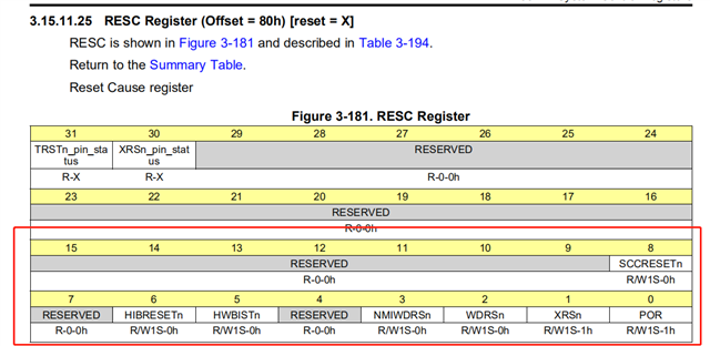 RESC的复位信号源在“3.3.1 Reset Sources”中定义。