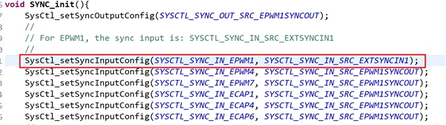 增加设置PWM1的同步输入就可以了。