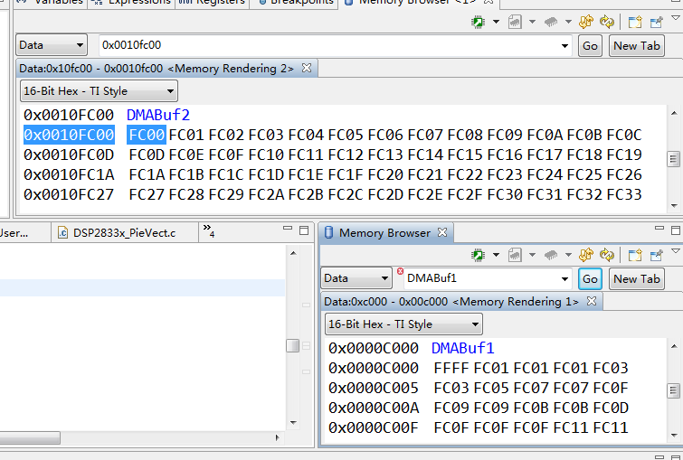 第一个问题,为什么3.3的教程里输入DMABuf1能查地址,在5.5反而不行,只能输入地址查看,5.5的memory browser是不是和3.3的memory一样的?