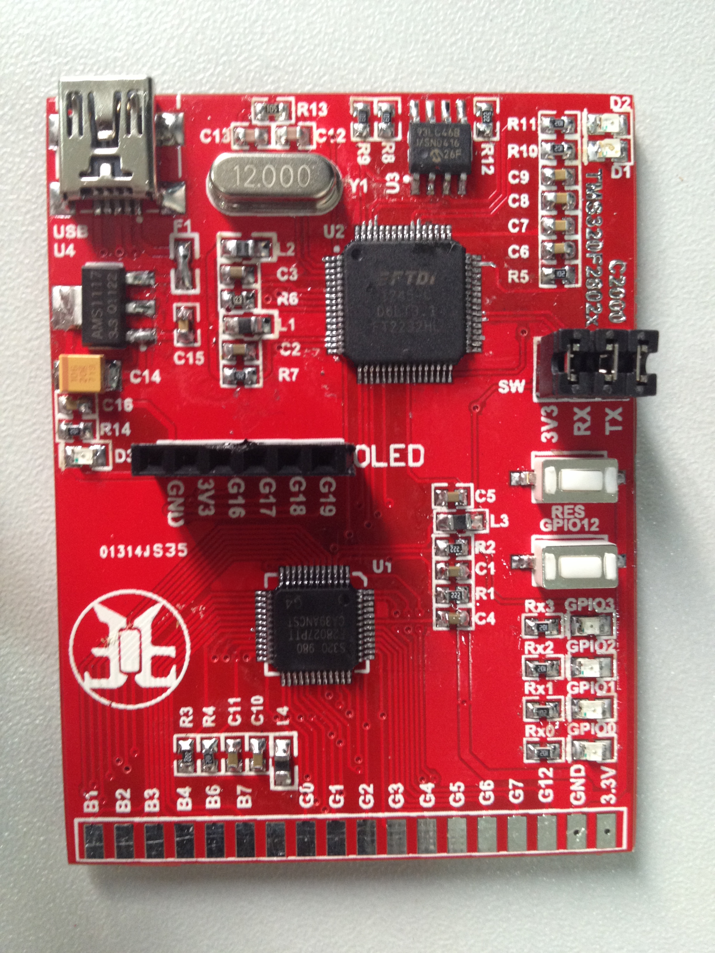 13年年初学习了28027,那时候第一次接触TI的芯片,之前学的都是ARM的芯片,突然接触TI的,很多编程风格不是很习惯,但是还是很努力的学完,并且用了这款芯片做了很多项目。之后的暑假,老师让我研究怎么自己画28027的最小系统板和仿真器。研究了一周多,成功的画出自己的第一块最小系统板(下图红色板子),测试也很成功。仿真器做的是XDS100V2版本。之后的毕业设计,也是用28027做四旋翼飞行器。但是大部分的程序,都是参考例程里面去配置各个模块。其实对很多模块内部不是非常理解。