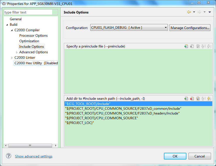 我在使用28377D示例工程的时候,build configuration set RAM 和FLASH时都能正常通过。但是加入了自己写的一个头文件时,RAM编译的时候可以通过,flash的时候则报错无法打开相应的头文件?这可能是由于什么原因呢?示例工程的.C文件还是放在示例工程的文件夹下,自己的头文件则放在了workspace工程目录下。