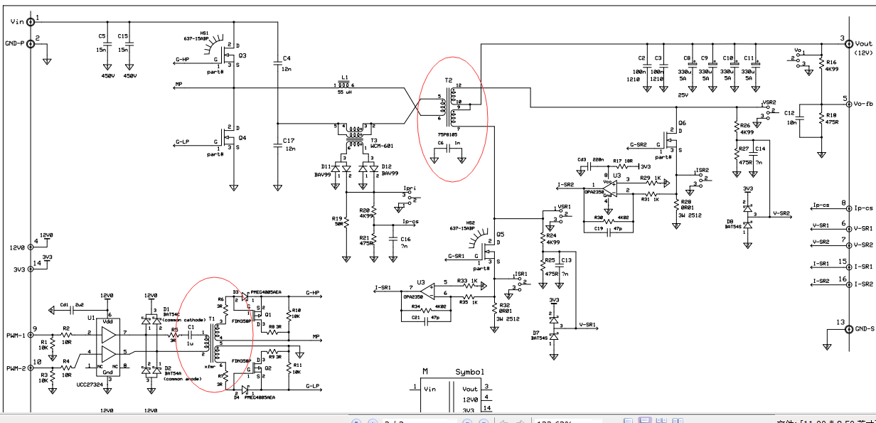 如图所示的T2变压器,具体参数是什么,查了一下TI 提供的bom表,型号为75PR8105,是由Vitec公司定制的,所以查不到detasheet。去Vitec的官网也查不到这个型号,请问变压器原副边感量是多少,匝比是多少?