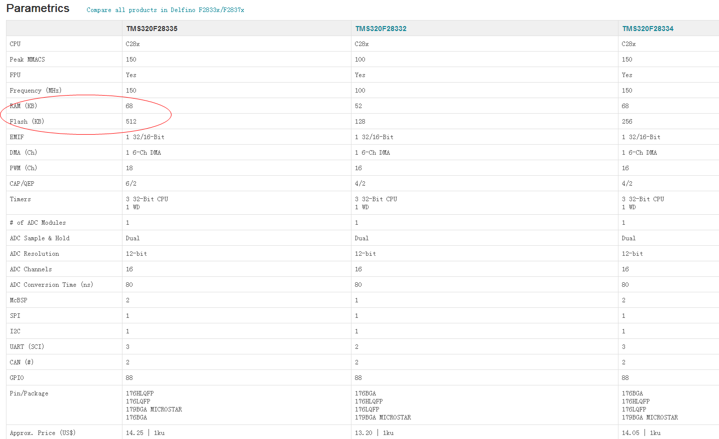 查询TI的28335的数据手册上写出来的是34K的SARAM与256K 的片上FLASH,但是同样是官网上写出的却是翻倍了,即68K 的SARAM与512 K的FLASH,哪里出错了?哪个才是正确的,TI工程师回答一下,谢谢!