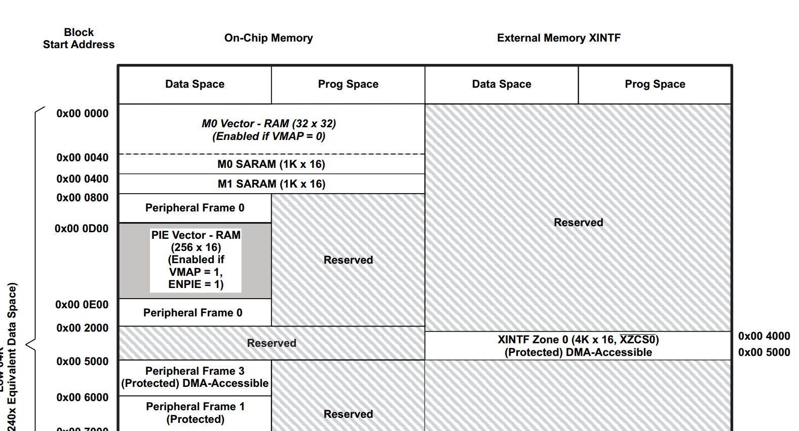 以下为数据手册里面截取的内存截图,关于On-Chip Memory 包含Data Space和Prog Space是不是说,On-Chip Memory可以当变量存储空间也可以存储程序。对于0x00 0800~0x00 2000是不是就不能存储程序,