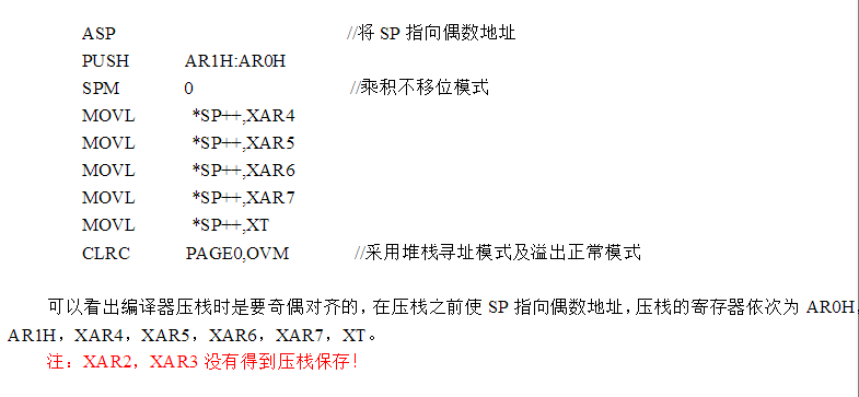 但还有很多寄存器如XARx没有保存,P95页给出了完整保存寄存器的方法,如下截图。