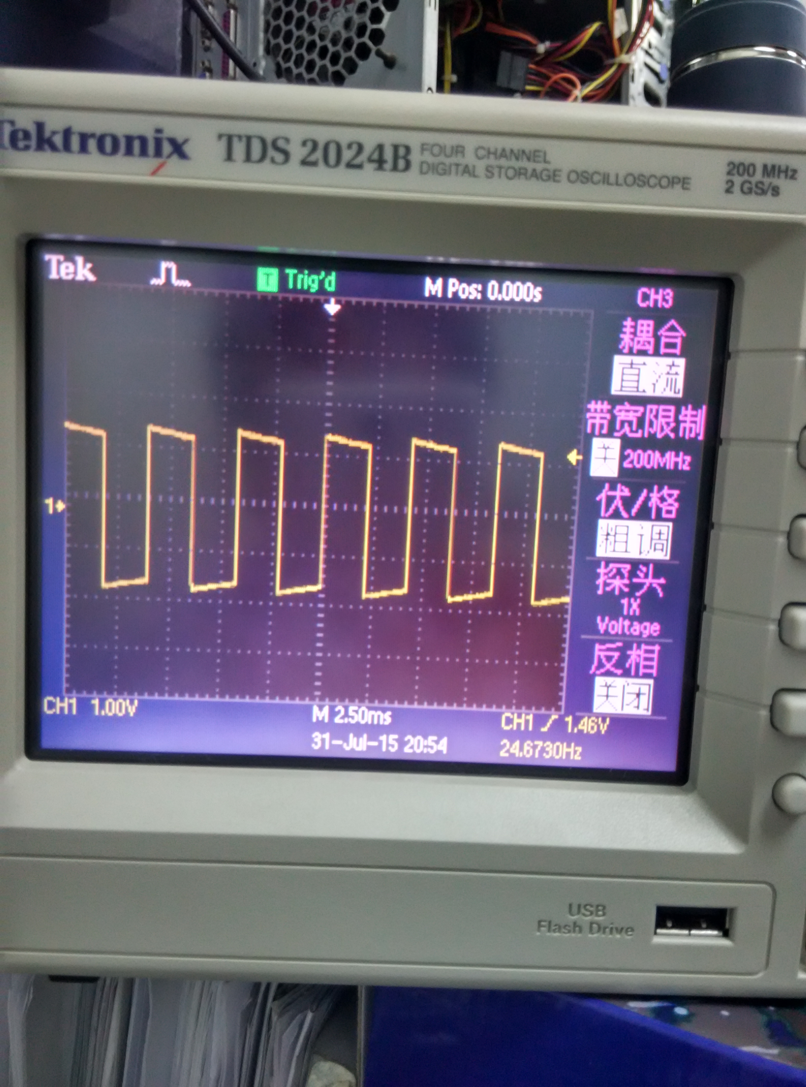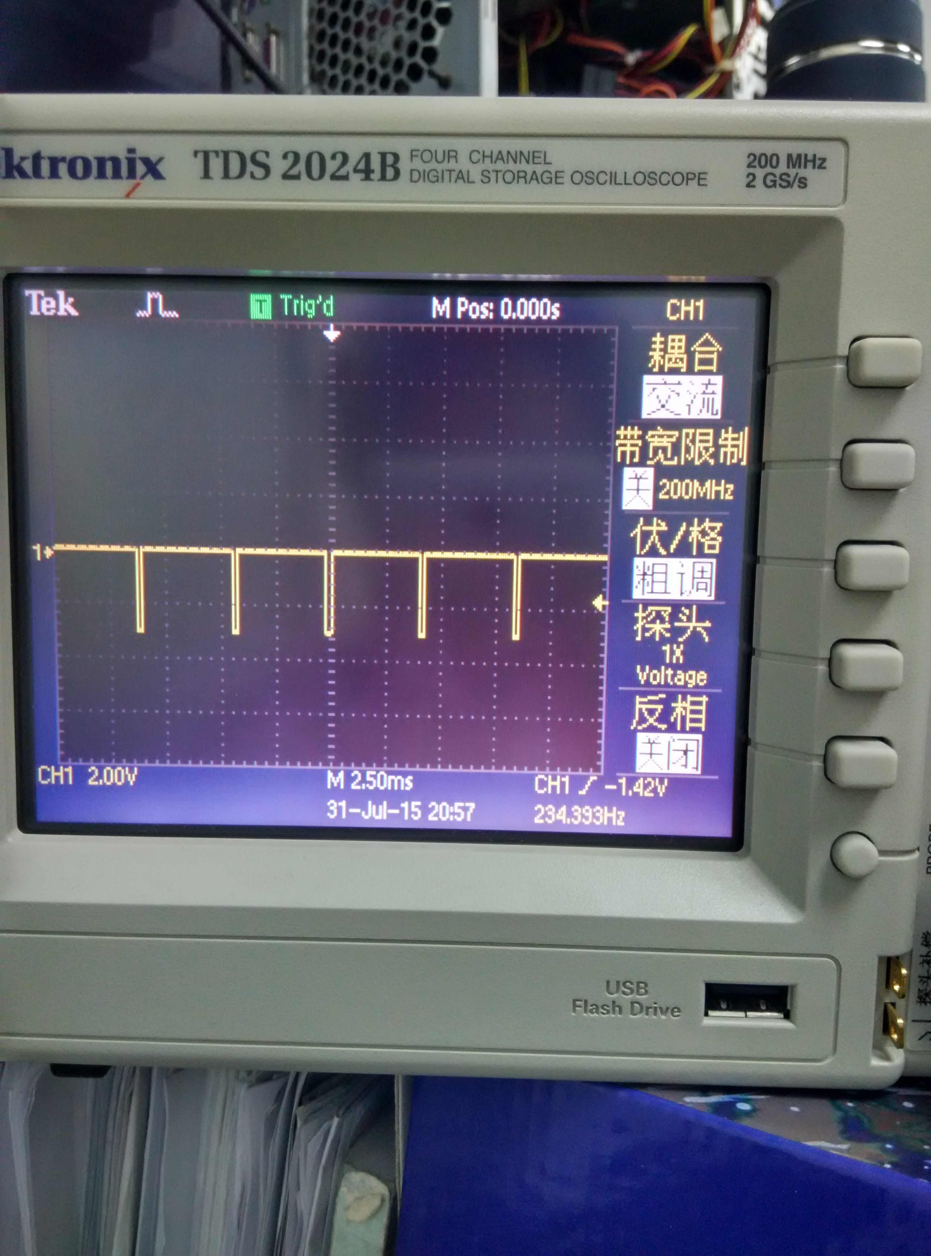 前一段都好好的,今天抽筋了。然后用示波器一查,居然出现这种情况。