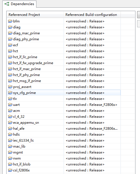 Build-configuration 'Release' does not exist in the referenced project 'bfm'. Use the 'Properties > Build > Dependencies' page to select an existing build-configuration. prime_llc_example_f2806x prime_llc_example_f2806x Problems