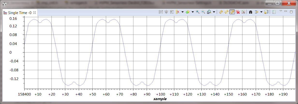 本人在使用ControlSuite里面的一个F28335的永磁电机无位置套件例程(2.1),设定的的频率是标幺值速度是0.2,换算成频率表是40Hz,因为斩波频率是10k,所以应该至少250个中断周期后才能获得一个完整的周期波形,程序中Dlog模块设置的缓存是200个,下图是graph的设置与结果,显示经过了仅仅50个sample就有一个完整的周期这是为何?