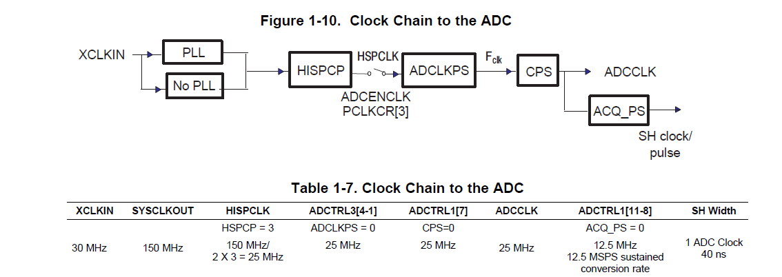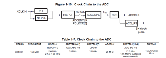 ACQ_PS设置为0,从adctrl1中的解释看到soc pulse is ADCTRL[11:8]+1倍的adc时钟周期,那不应该是1倍的adc 时钟周期吗,怎么会变成12.5M呢,求解答,到底F28335的adc时钟能够到多大,采样率最大是多少,谢谢