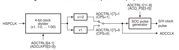 从图中看,HSPCLK变成ADCCLK过程要进行ADCTRL1[7](CPS)配置,但是官方例程都没有去专门配置这一位,是在哪里有默认的定义吗