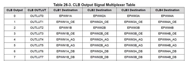 CLB的输出可以通过OUTPUTXBAR6到EPWM5B,那么对于EPWM5A,请问如何实现呢