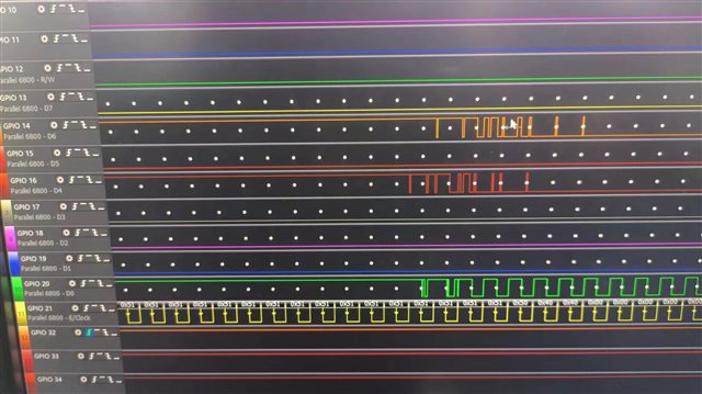 运行程序,采集UPP的所有控制引脚和数据引脚的波形信号,分析波形数据,发送期间信号正常。发送完成后START引脚会保持高电平,D5,D1,D0引脚的信号因空闲值的设置也会保持高电平。当程序将PEREN位设置为0后,START引脚,D5,D1,D0引脚的信号从高电平变为低电平期间会出现毛刺信号。