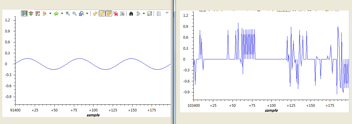 3.关于波形的实时显示,程序中使用的DLOG功能函数来实现,我尝试直接采用变量取地址,但是显示出的波形杂乱无章。如附图1-2,是同一个变量,前者采用DLOG绘图,第二个是直接取地址操作。 要是不采用DLOG函数,能否实现类似KEIL MDK逻辑分析仪那样可以实时显示呢?
