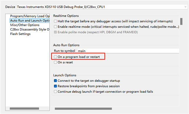 请问连上仿真器之后是否跟图中说的一样,会跳过F28003x_CodeStartBranch.asm直接进入main函数中。还有就是连接仿真器的情况下能不能切换BOOT启动模式例如选择RAM启动或者FLASH启动之类的,具体操作方法是怎么样的。感谢