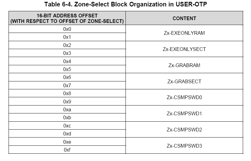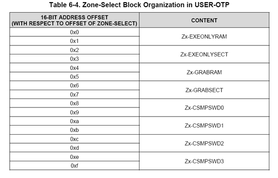 2)解密需要写入128-bits的密钥,因为是OTP的,密码只能写一次,而数据手册上提供了link pointer的方法可以设计多次密码,但愣是没能看明白是怎么设置的,贴了手册上的两张表,请TI的专家们帮忙解答下如何设置多次密码,举一个设置两次密码的例子,两次的密码分别在OTP的哪个地址上?还有在设置两次密码后,解密时候哪一次密码是有效的呢?