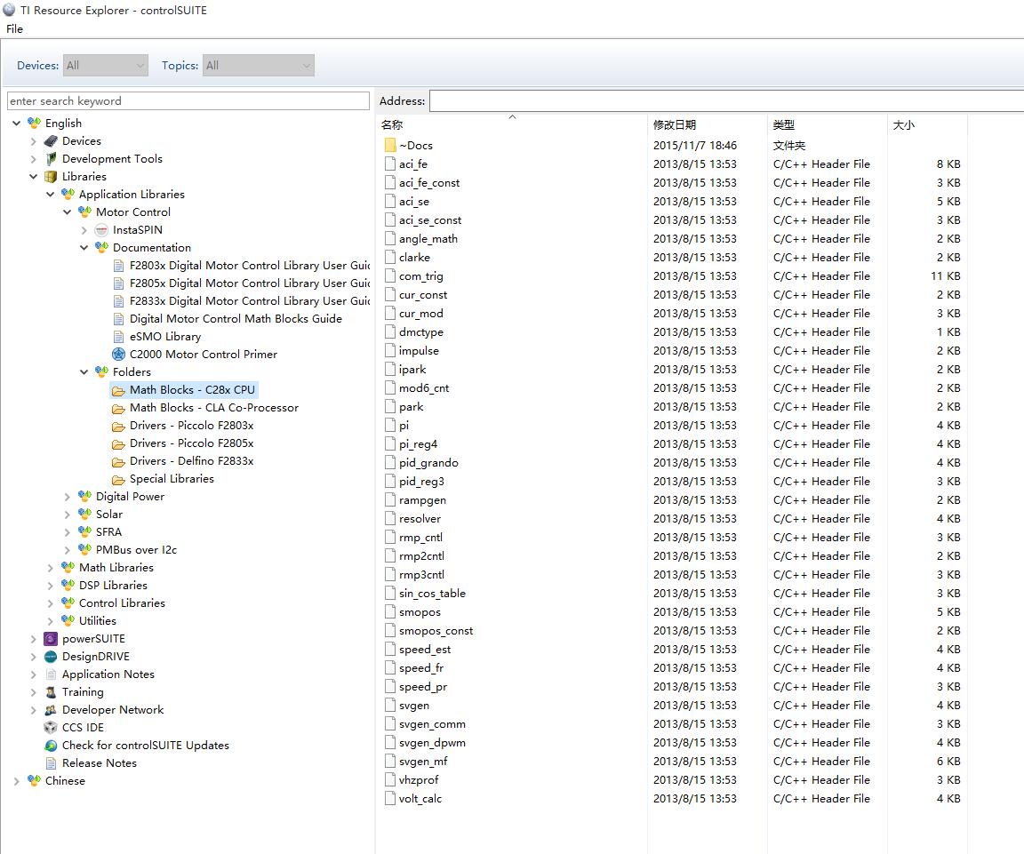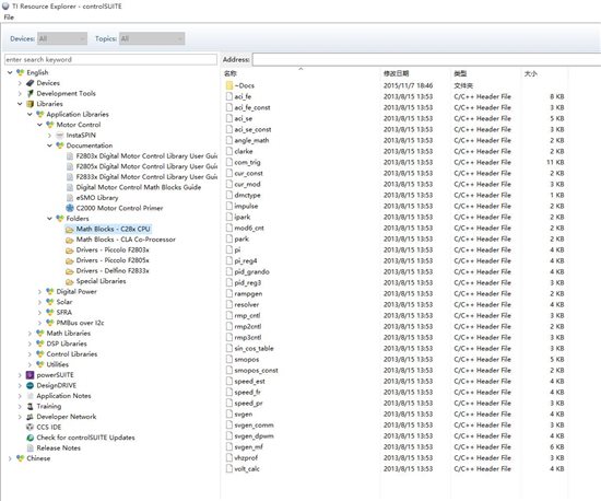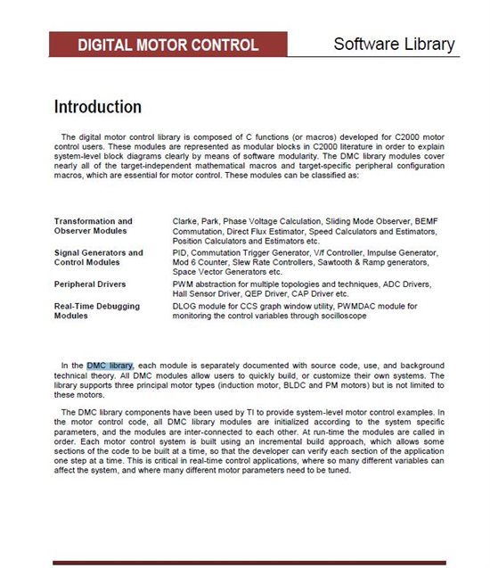 我想用park变换,发现在controlsuite中的math blocks中有我需要的相关函数,但这个文件夹里只有头文件,后来在最上方的文件里的PDF中,提到了一个DMC库,这个库中有相关的函数,可这个库在哪里呢?找不到啊