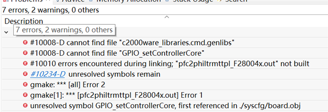 error #10008-D: cannot find file "GPIO_setControllerCore"