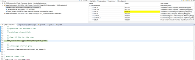 When interrupt is triggered, the ePWM4 TBCTR is 0x2D3(723), which is slightly larger than 690. This indicates a correct synchronization(I think).