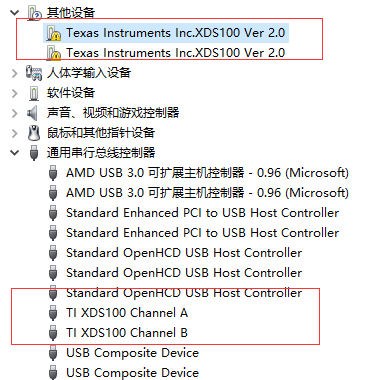 之前xds100v2的驱动安装正常,一切都正常。最近使用时,在设备管理器中发现又多出两个TI xds100 v2设备未安装驱动,而且仿真器上的FT2232发烫。现在程序可以下进去,但是串口通信没有用,我在做simulink的外部仿真时显示无法连接设
