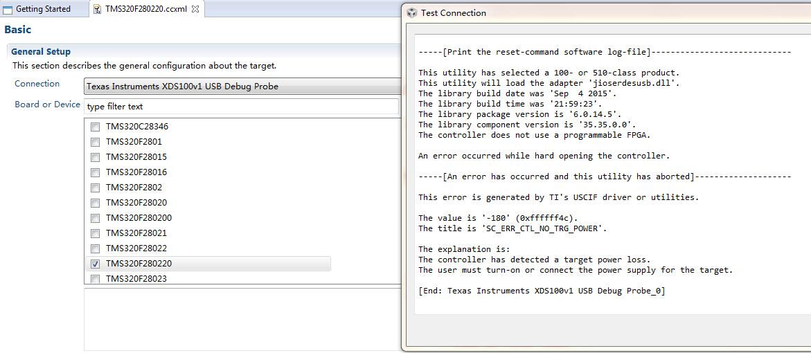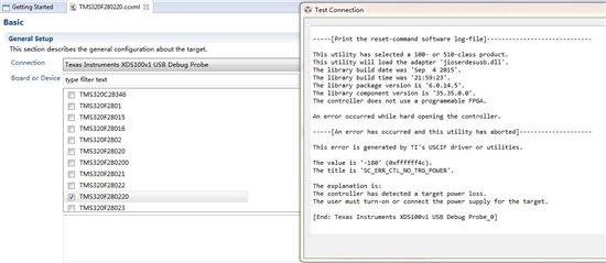 我用CCSV6连 TMS320F280220连接不上,报如下错误(见图片),本来以为是硬件连接有问题,但是用CCS3.3却可以建立连接,但是无奈CCS3.3不能烧写和调试F280220,请大神帮忙分析错误原因,急啊,多谢!!!!