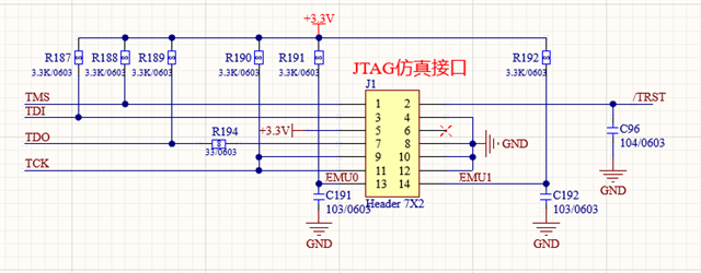 检查了供电3.3和1.2没有问题,晶振正常,复位脚正常,Jtag各上拉电压正常,还有哪里可能会有问题?部分原理图如下。