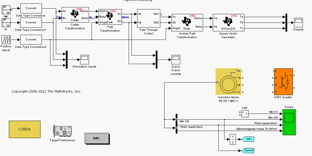 Induction motor 的 A/B/C 和 IGBT  Inverter 可以连接, 但和 Space Vector的 Ta/Tb/Tc 无法相连。