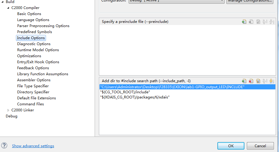 问下,这个include option中的文件跟filesearch的文件到底是怎么回事啊,尤其是"${XDAIS_CG_ROOT}/packages/ti/xdais"这个东西,新建工程的时候根本就没有它,是在哪里啊,还有"${ORIGINAL_PROJECT_ROOT}"这个也没有,不知道什么玩意,求解答啊。。。被这些文件困扰好多天了