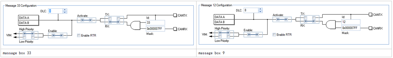 关于massagebox的配置,1-8号为发送,9-64号为接收(中断)