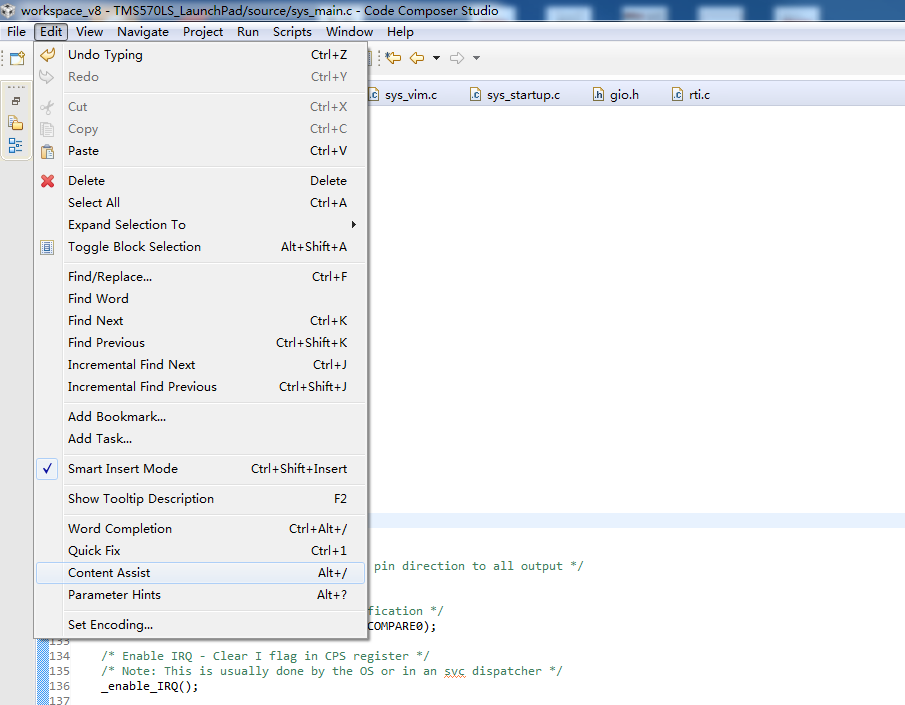 CCS有没有类似VS、Keil等输入编辑的联想功能,例如输入“gioI”的时候会有“gioInit”等等的下拉选项