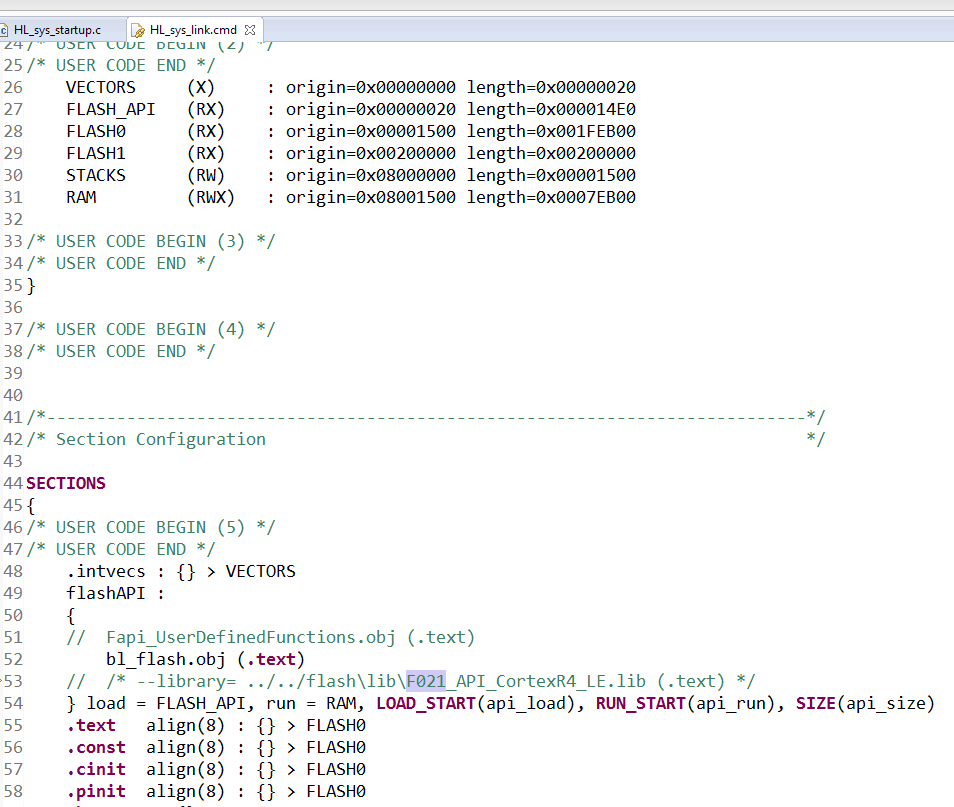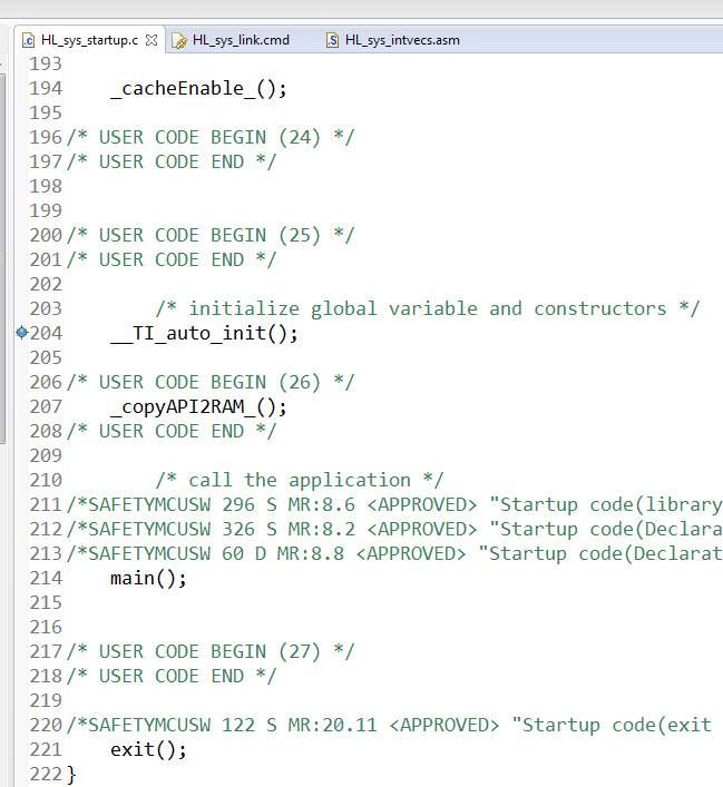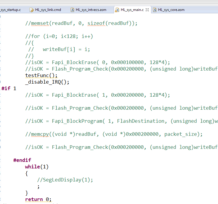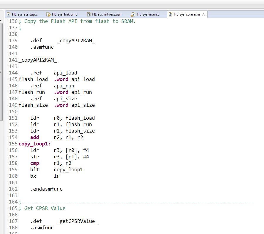 我在使用rm57l8xx的芯片时,需要做BootLoader启动,在根据官网下载的例子在将函数拷贝到ram中时,在main函数中调用拷贝到ram中的函数时,程序在执行_c_int00函数中的 _copyAPI2RAM_()函数后,跳转到b dataEntry处,在将main函数中调用拷贝到ram中的函数注释掉后,程序不会卡死在b dataEntry。请问有谁遇到过这种问题么?