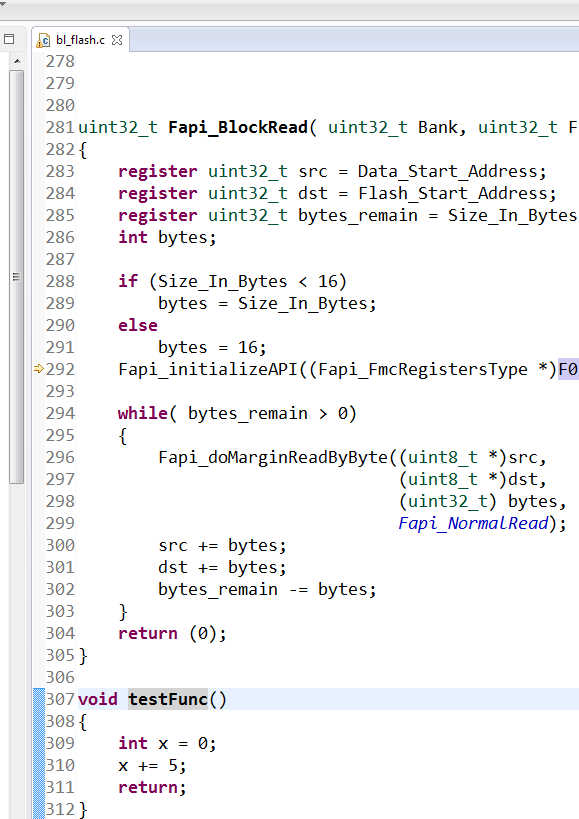 在bl_flash.c文件中随便写了个函数testFunc(),将bl_flash.c文件拷贝到内存中去后,在main函数中调用testFunc()函数,程序就会在执行_copyAPI2RAM_后,跳转到b dataEntry。我在rm44L520上用该方法制作BootLoader是没问题的。