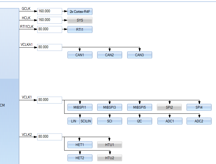如图,在clock tree里面,像ADC CAN这些外设的主频都是80MHz,然后570的主频是160MHz,为什么刚好是一半,可以配置得更快吗?谢谢