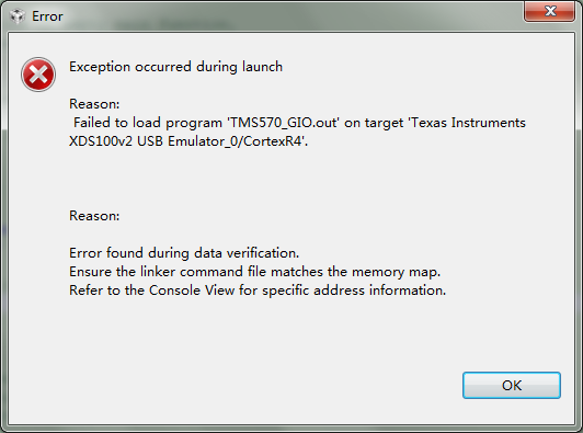 CortexR4: File Loader: Data verification failed at address 0x00000002 Please verify target memory and memory map.