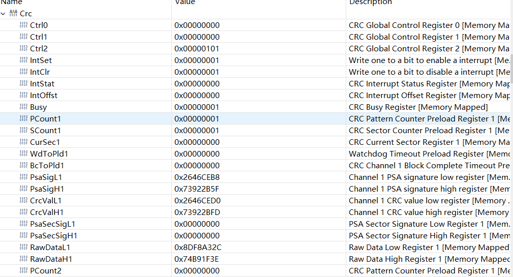 请教一下,测试TMS570LS3137的crc自动模式,发现BUSY位一直为1, PSA sector signature寄存器没有值,PsaSig寄存器和CRC_Value寄存器的低8位不匹配,问题出在哪呢?