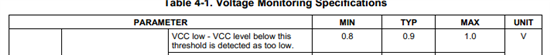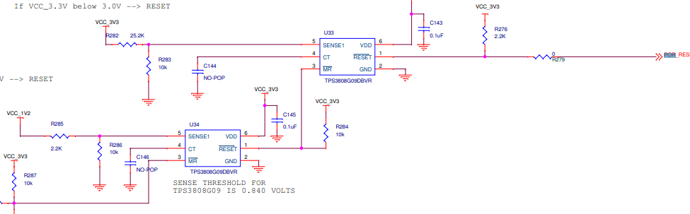 根据RM48 HDK 中电源检测设计,page7,使用TPS3808G09,电压低于1.03V,nPORRST 置0,那么这个电压是不是和VMON的VCC low重复?如果为了安全,是否应该将此门限值设置在推荐电压1.14V以下,比如1.1V?