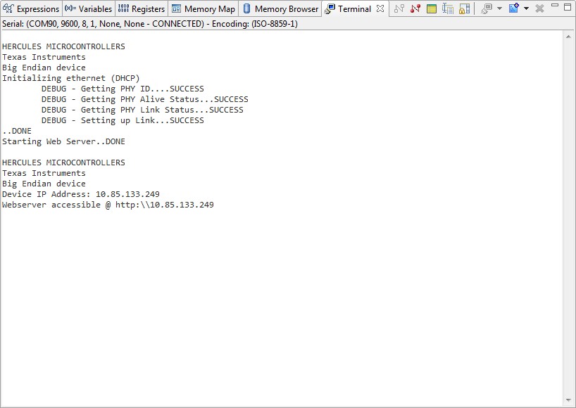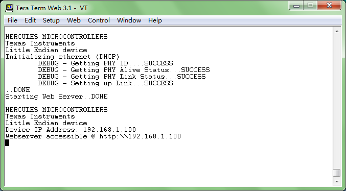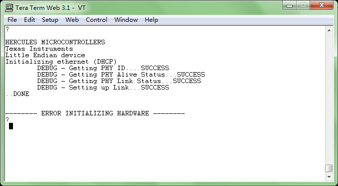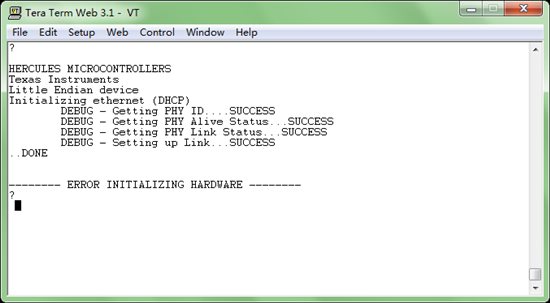 参照wiki--processors.wiki.ti.com/.../HALCoGen_Ethernet_Driver_and_lwIP_Integration_Demonstration里的步骤操作,出现如下结果:
