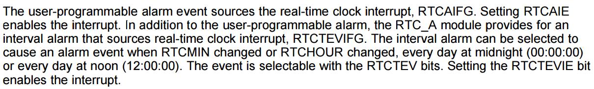 RTCCTL01 &= ~(RTCRDYIFG + RTCTEVIFG + RTCAIFG);