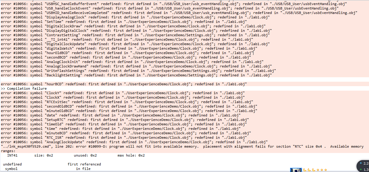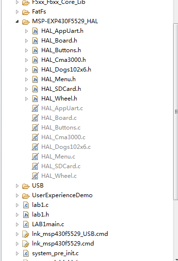 楼主用的是CCS v6 板子是MSP430f5529实验板,附件中有两个工程lab0和lab1,lab1是编译通过,lab0是我新建的工程,把lab1中的.h和.c文件都导入到了lab0,但是编译lab0的时候就报错,后来我看了下发现lab1工程中的那些文件夹中的.c文件在CCS中都显示的是灰色的,如下图