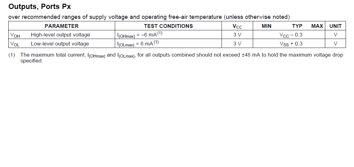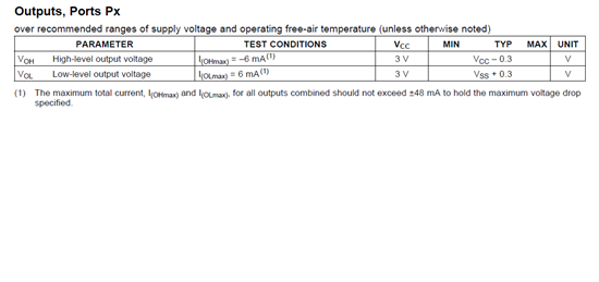 msp430g2553每个端口单独输出电流多大?可以大于6mA吗?