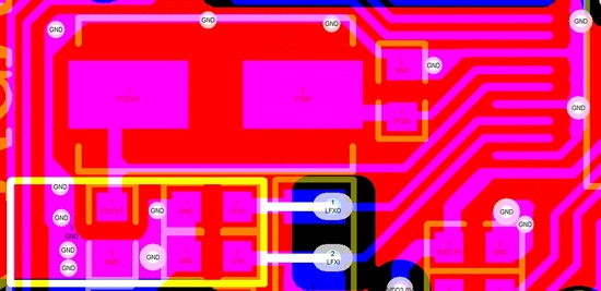 第二次,最近30张样板:1)先有2张发生在配置阶段:烧程序之后电脑通过USB-TTL模块配置样机参数,先连接电缆,再上电池,无其他外设, 发现 不能配置,LED跑马灯运行10秒左右随机停在某个位置,RST复位后32K\8M晶体停振,后来只运行闪灯程序反复休眠和激活也会 停下来;2) 更换CPU之后再次发现一张同样现象。3)样机测试中不久发现1张直接32K 8M停振,断电重启5分钟内重现。