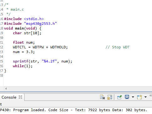 MSP430: Program loaded. Code Size - Text: 48 bytes Data: 2 bytes.