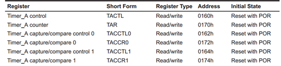 如图,16位的TACTL起始地址是0160h的话,那么最后一位的地址应该是016Fh,下一个寄存器的初始地址应该是0170h,但是TACCTL0的地址却在0162h是怎么回事。。。