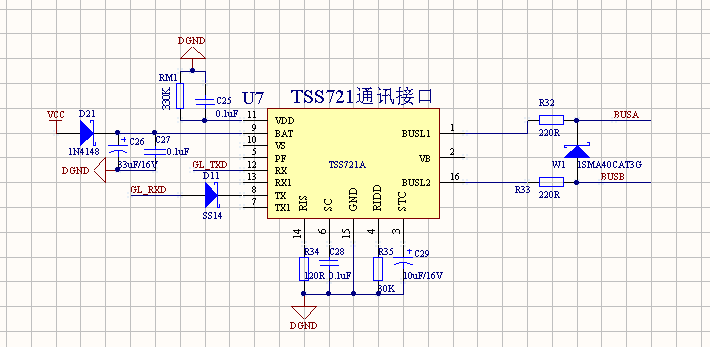 波特率最低到300,TX和TX1还是有信号,应该不是RX、TX之间的串扰。我认为信号从BUSL上来的。如果把BUSL上的电压去掉,RX上输入信号,TX上就保持高电平和TX1保持低电平不变了。给RX输入信号时,BUSL1和BUSL2上的电压变化很小,基本没有变化啊?